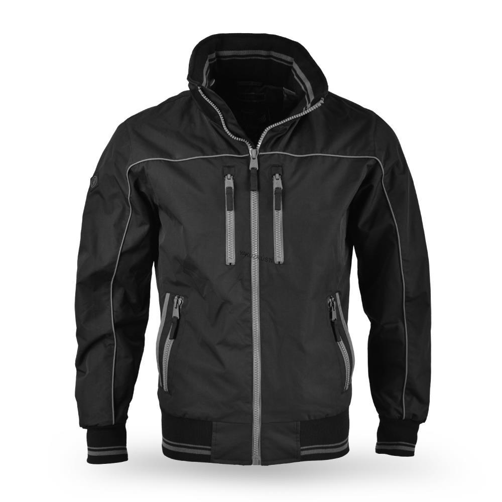 Sportovní bunda Thor Steinar ,dolní lem, manžety a vnitřní strana límce jsou vyrobeny z kvalitního úpletu s kontrastním proužkem vysoký límec s integrovanou kapucí, lehká podšívka, dvě boční a dvě náprsní kapsy jsou uzavírány zipem, reflexní proužek na přední i zadní straně, runový potisk na límci, malý pat.