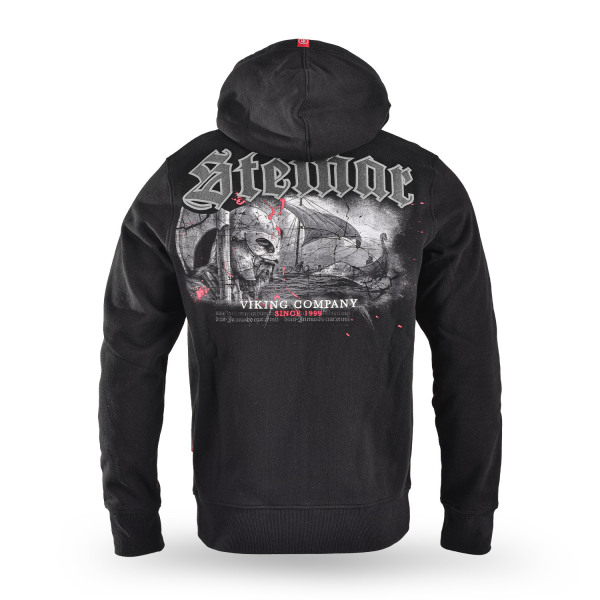 KPZ Olrik,klasická mikina Thor Steinar s kapucí a typickým vikingským motivem, dvojitě prošitá kapuce s kontrastní podšívkou a štítkem na lemu, dolní lem a manžety rukávů jsou vyrobeny z kvalitního úpletu, dvě boční kapsy, pevný hlavní zip, velký potisk s výšivkou na zádech, malé vyšité logo na hrudi, vyšitý runový nápis na rukávu, všitý štítek v bočním švu