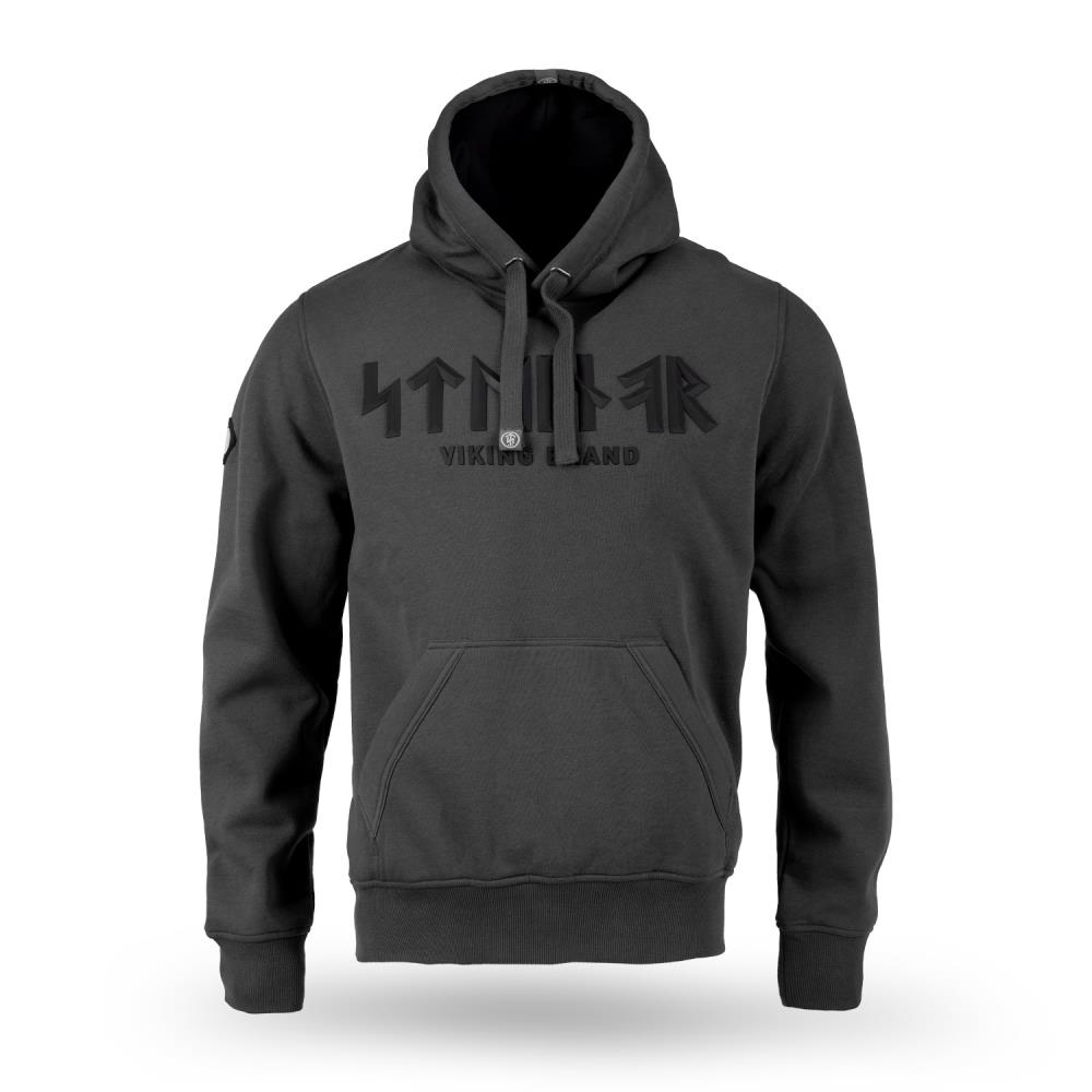 Mikina Lehar, dvojitě prošitá kapuce s štítkem na lemu, velká přední kapsa "klokanka", dolní lem a manžety rukávů jsou vyrobeny z kvalitního úpletu, velká aplikace s runami na hrudi, všitý štítek v bočním švu, štítek s logem na rukávu