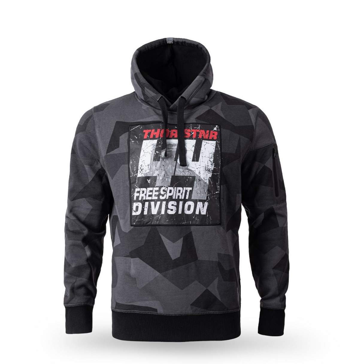 Pánská mikina Thor Steinar Eagle 44 KPZS 19135 anthra-camo, podšívka kapuce s tištěným maskáčovým vzorem, ploché šňůrky s tkaným štítkem, kvalitní fototisk s výšivkou na okraji, praktická, uzavíratelná kapsa na paži