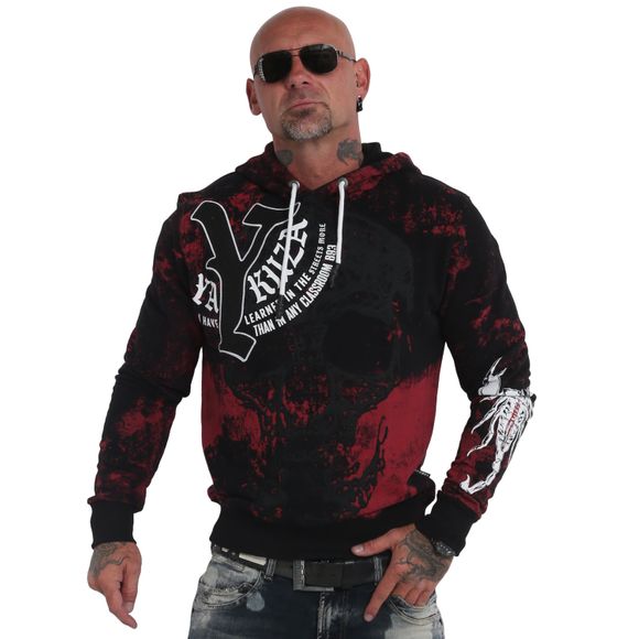 Pánská mikina Yakuza HIDDEN SKULL HOB 19004 black s kapucí klasického střihu bez zipu s kvalitním potiskem po celé ploše mikiny.