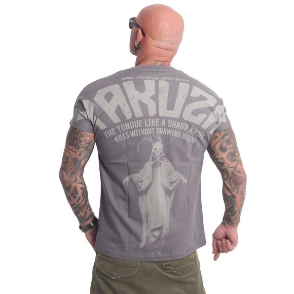 Pánské triko Yakuza SHARP KNIFE TSB 22006 steel gray je vhodné pro každodenní nošení. Je vyrobené ze 100% bavlny s kvalitním potiskem na přední i zadní straně.