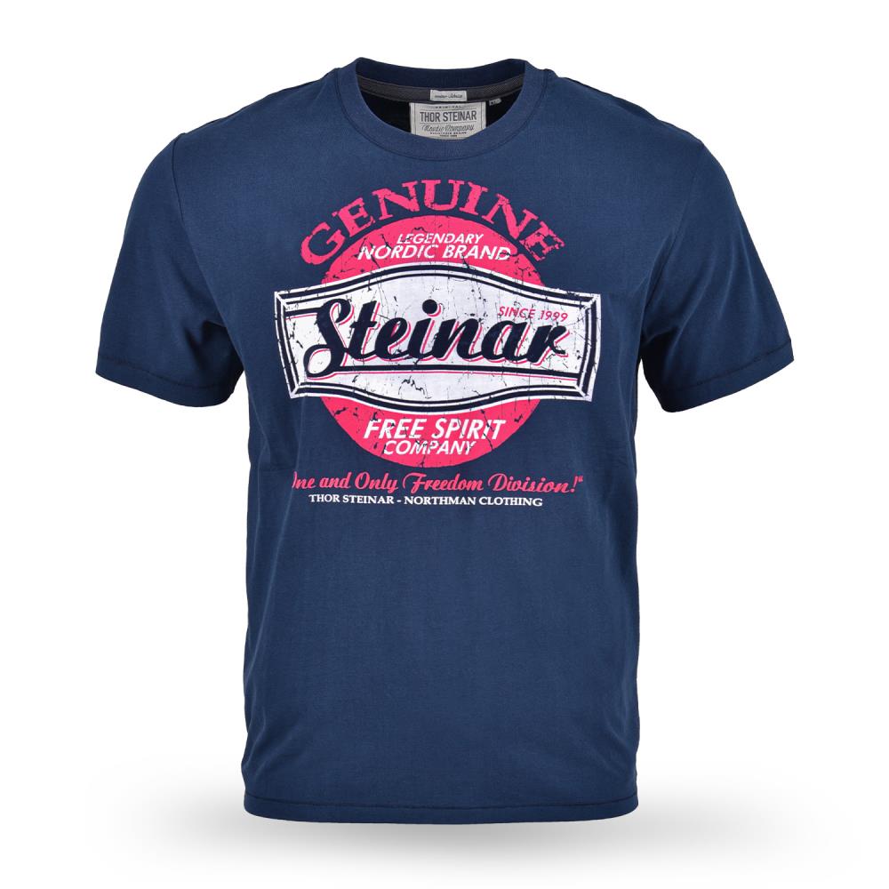Triko Thor Steinar s krátkým rukávem s krásnou aplikací, klasický, široký střih, výstřih lemovaný kvalitním úpletem, kryté vnitřní švy, velká aplikace z potisku a flocku na hrudi, malé tištěné logo za krkem, všitý štítek v bočním švu
